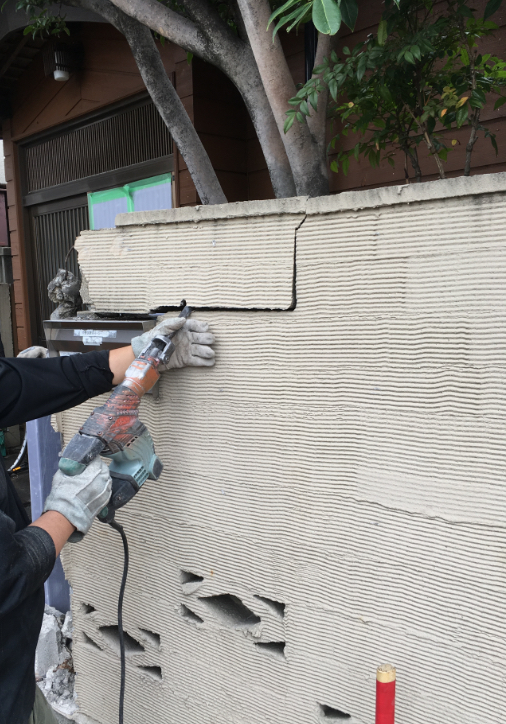 高所作業車を使用しての解体作業中です。安全面に配慮し、作業を行っています。
